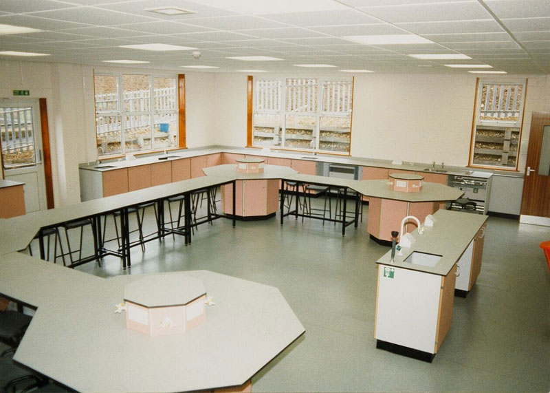 Providing new Science Laboratories (shown), Prep’ Rooms and a New Art Block on a precarious and shifting slope proved a great challenge but the project was, as always, delivered on time and within budget.
